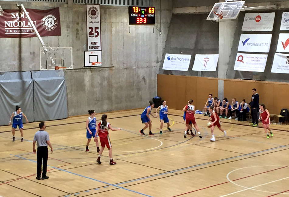 El segon període, molt correcte, va servir per arribar al descans amb el partit controlat i acumulant una diferència de 20 punts al marcador. Ara bé, les noies de Sant Nicolau varen baixar el ritme durant el tercer període, on les visitants van pujar una marxa més i amb un parcial de 0-12 aconseguien retallar distàncies i posar la por al cos de les grana, que van deixar-se portar pel ritme visitant.