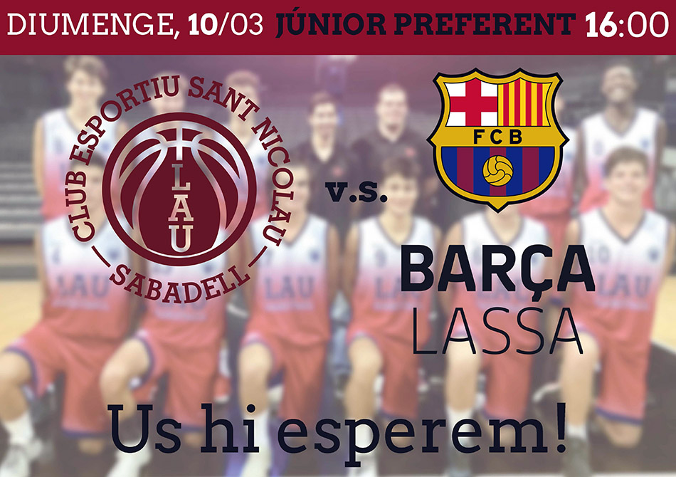 El proper diumenge 10 de març a les 16h de la tarda tindrà lloc al pavelló del carrer Jardí un partit molt especial, ja que s'enfrontarà el nostre Júnior 1 Masculí Kyrya, contra el tot poderós Barça Lassa en un duel corresponent a la jornada 9 de la categoria Júnior Preferent A Masculí que la disputen els 8 millors equips de Catalunya.