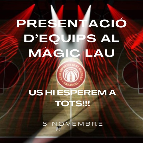 Aquest dissabte 8 de novembre a la tarda, arriba un dels moments més especials de la temporada: la Presentació dels Equips del Club Esportiu Sant Nicolau 2025-2026. Una tarda plena de bàsquet, emoció i orgull grana amb tota l'entitat reunida al Màgic Lau, que tornarà a vibrar amb l’energia de tota la família col·legial!