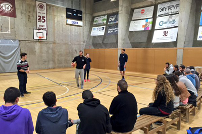 Els entrenadors després van dirigir-se cap al pavelló, on l’Adrià Alonso, tècnic del primer equip masculí de l’entitat, va realitzar una sessió en format de clínic centrat en les idees per entrenar la defensa en els equips de formació. Gràcies a la seva llarga experiència tant en equips petits de formació com en equips joves de competició, l’Adrià va explicar les seves filosofia de treball per construir una defensa, iniciant pels gestos tècnics dels desplaçaments, les recuperacions, la defensa de l’1x1 i les situacions que es donen en el bàsquet, reduïdes a format 2x2 i 3x3. Tots els nostres entrenadors van entrar en debat, anàlisi i assimilació de nous conceptes i experiències pròpies en el treball diari de defensa que va enriquir molt la xerrada proposada per l’Adrià.