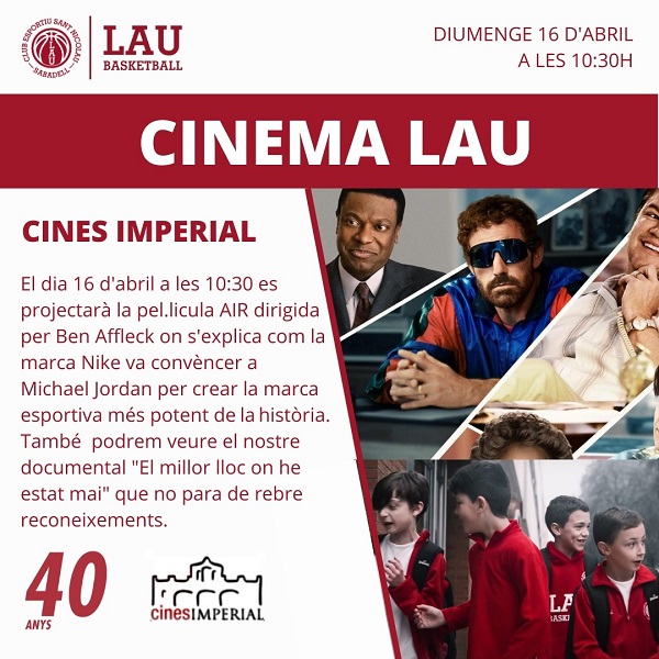 Anem al Cinema Imperial? Us animem a venir a una sessió única, i organitzada com a nou acte de commemoració dels 40 anys del CESN, amb la #FamíliaLAU el diumenge 16 d'abril a les 10:30h. Es projectarà la pel·lícula AIR dirigida per Ben Affleck.